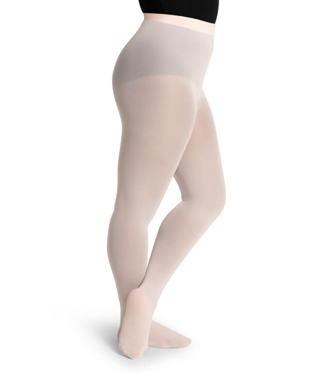 Dance effortlessly in the Studio Basics Footed Tight. Features a self knit waistband that holds the tight securely in place without the discomfort of elastic. Made of a nylon and spandex blend that is resilient. This tight is seamless to create a sleek profile for layering dancewear.