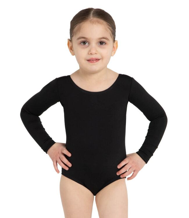 Whether it's in the studio or after school, Capezio's Long Sleeve Leotard sets the standard. Wear traditionally with tights or pair this leotard with soft leggings or shorts for active wear. Double-stitched seams guarantee long-lasting wear.Â